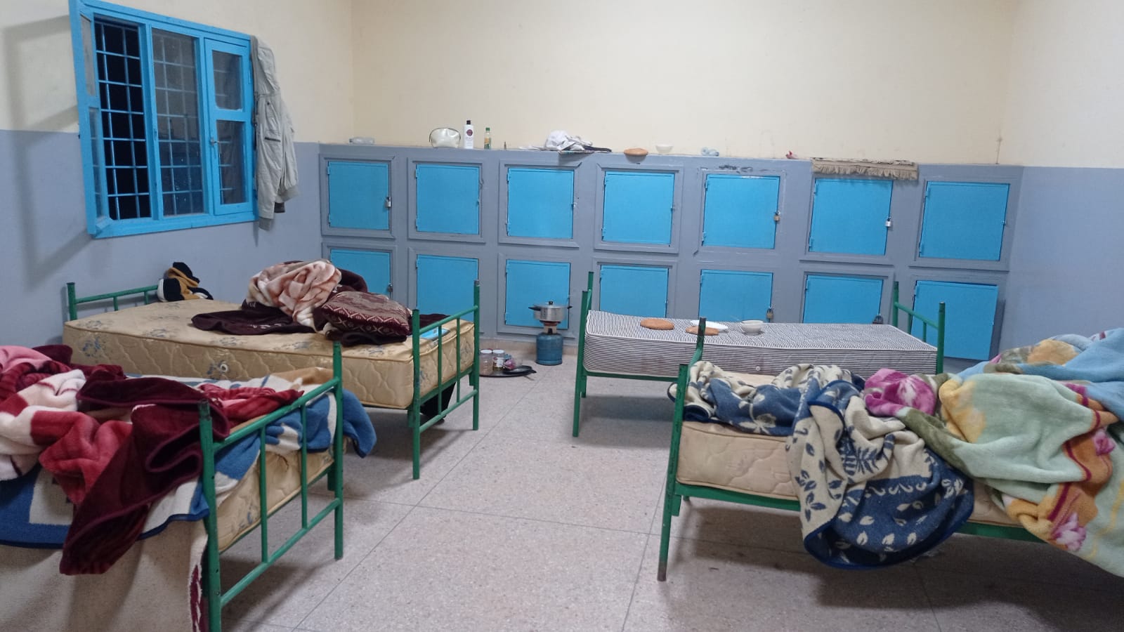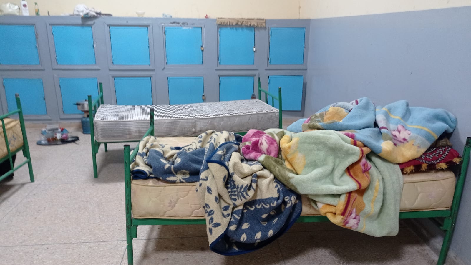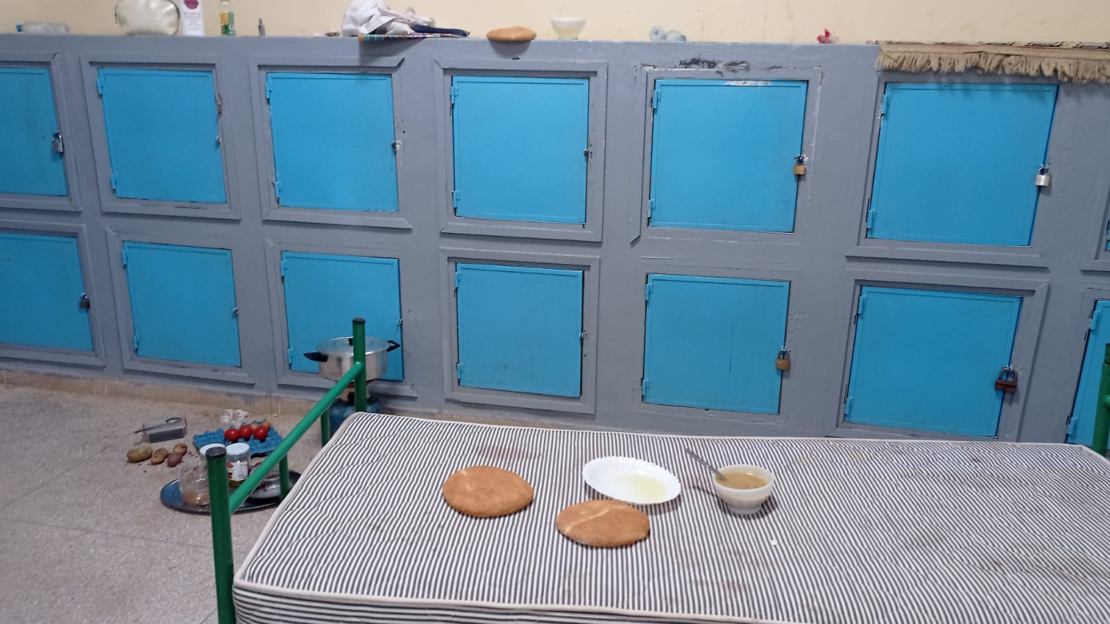 إضافة إلى ما سبق نذكر بالوضع الكارثي اللاإنساني الذي عاشه نزلاء دار الطالب خلال فترة رمضان المنصرم، إذ تم تجويعهم بكل ما تحمله الكلمة من معنى وإقتصرت الوجبات المقدمة على مجرد الزيت والكوفيتير، كما تشهد دار الطالب غيابا مكررا للطباخ خلال يومي السبت والأحد، الشيء الذي يضطر الطلبة إلى إعداد وجباتهم الخاصة في المكان المخصص للنوم مما يشكل خطرا محدقا بسبب وجود قنينات الغاز بأماكن النوم (أنظر الصور).. هذا بالرغم من أن عدد الطلبة الإجمالي لا يتعدي 17 فردا. مما يدل على فشل رئيسة الجمعية المسيرة في تسيير المؤسسة.