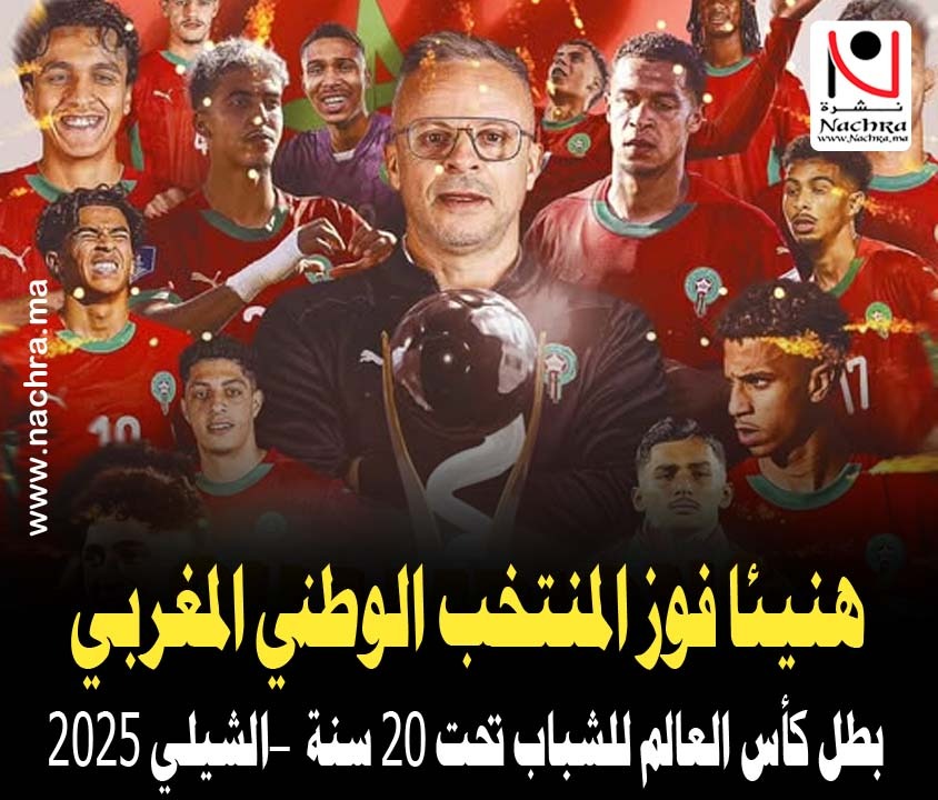 تُوّج المنتخب المغربي لكرة القدم للشباب، صباح الاثنين، بطلاً لكأس العالم 2025 التي احتضنتها تشيلي، عقب فوزه المستحق على نظيره الأرجنتيني بهدفين دون رد في المباراة النهائية. ووقّع النجم ياسر زبيري ثنائية تاريخية في الشوط الأول، قاد بها “أشبال الأطلس” إلى إنجاز غير مسبوق.