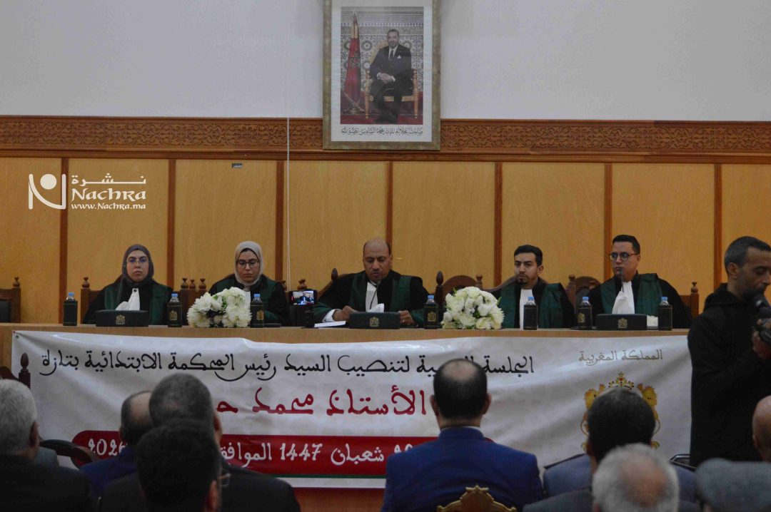 شهدت المحكمة الابتدائية بتازة، اليوم الأربعاء، مراسيم تنصيب الأستاذ محمد حاري رئيساً جديداً للمحكمة خلفاً للأستاذ جمال غولين، وذلك خلال جلسة رسمية حضرها الكاتب العام لعمالة إقليم تازة، ورئيس الدائرة القضائية بتازة، والوكيل العام لديها، إلى جانب مسؤولين قضائيين وعسكريين وأمنيين، ورئيس المجلس الإقليمي لتازة، وممثلي المهن القضائية والسلطات المحلية وعدد من المنتخبين، فضلاً عن قضاة وموظفي قطاع العدالة.