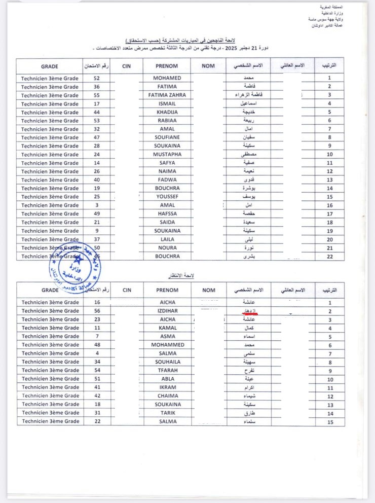 أثارت مباراة توظيف تقني من الدرجة الثالثة، تخصص ممرض متعدد الاختصاصات التي نظمتها وزارة الداخلية بولاية سوس ماسة وبتنسيق مع خمس مجالس إقليمية بالجهة؛ المؤطرة بقرار صادر عن عمالة أكادير إداوتنان رقم 13 بتاريخ 21 نونبر 2025، موجة واسعة من الاستياء والتذمر في صفوف عدد من المترشحين، وذلك على خلفية ما وصفوه بـخروقات خطيرة شابت مراحل الانتقاء، خصوصًا ما يتعلق بلوائح الناجحين في الاختبار الكتابي المؤهل للمباراة الشفوية.