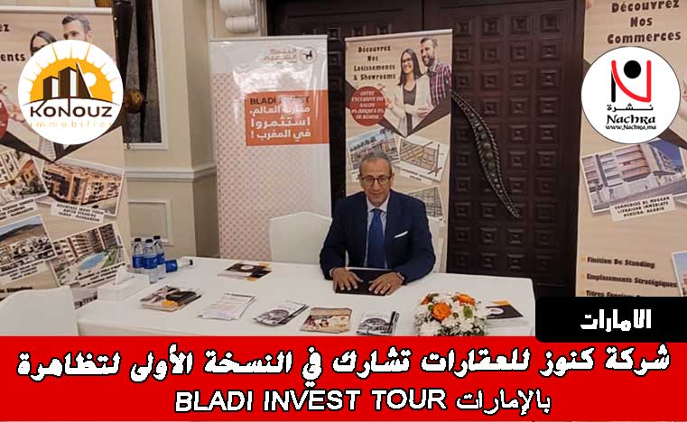 شاركت شركة كنوز للعقارت في النسخة الأولى من التظاهرة الخاصة « BLADI INVEST TOUR »، التي نظمت يوم 18 أكتوبر الجاري، بمدينة دبي بالإمارات العربية المتحدة.