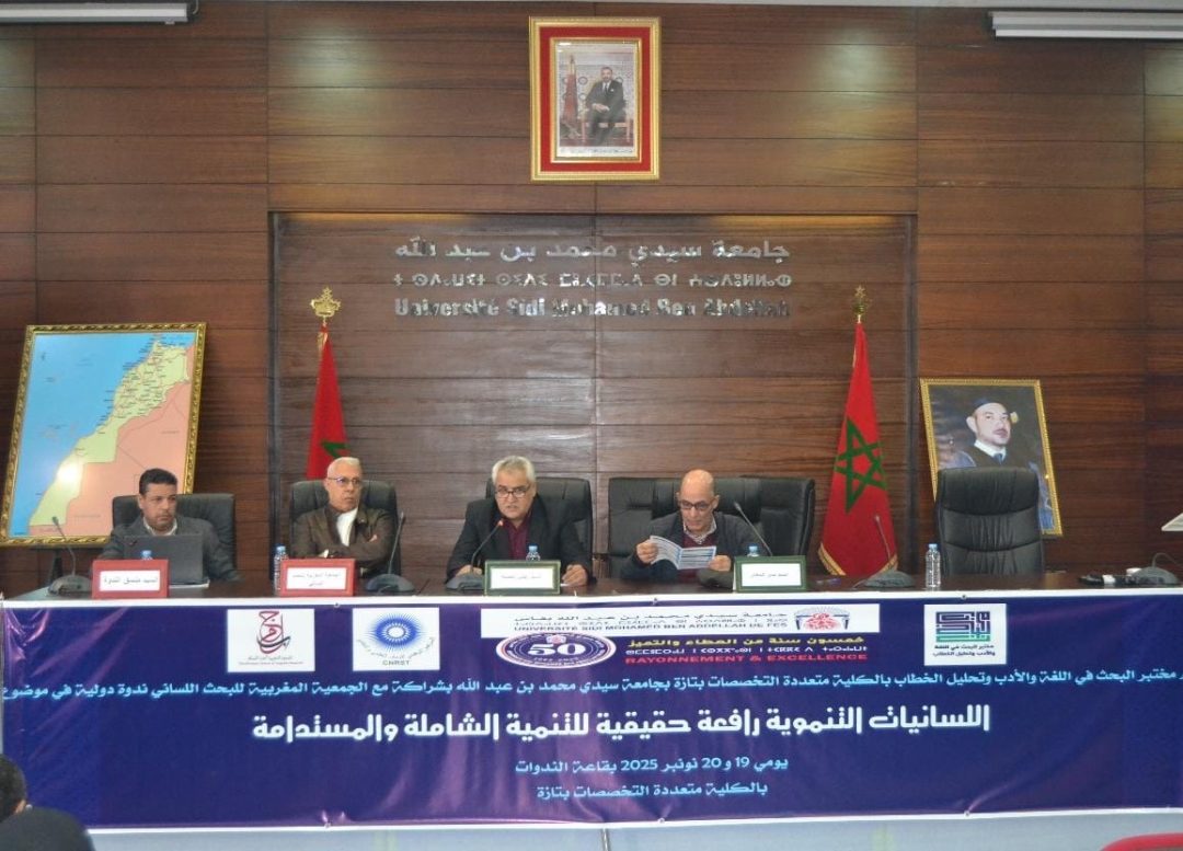وقد عرفت الندوة المنظمة من طرف مختبر البحث في اللغة والأدب وتحليل الخطاب بالكلية متعددة التخصصات بتازة التابعة لجامعة سيدي محمد بن عبد الله، بشراكة مع الجمعية المغربية للبحث اللساني مشاركة باحثات وباحثين من مختلف الجامعات المغربية لمقاربة موضوع اللسانيات التنموية وتقاطعاتها المعرفية وإرساء فهم جديد لهذا المفهوم، باعتباره مفهوما ينحو إلى ربط اللغة بالتنمية تبعا لأبعادها السياسية والثقافية والاجتماعية والاقتصادية، حيث إن اللسانيات التنموية مفهوم متشعب الجذور والمنطلقات المعرفية من علم النفس، وعلم الاجتماع، والعلوم الأحيائية، والعلوم العصبية، والمعلوميات التي تتفاعل لخلق كفايات ذهنية وعصبية تمكن المتكلم عموما من اكتساب اللغة بمفهومها العام.