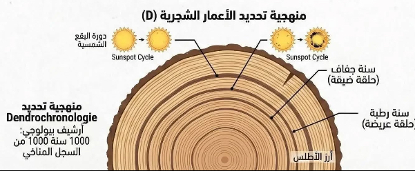 اعتمدت الدراسة على علم “تحديد الأعمار الشجرية” (Dendrochronologie) وتحليل النظائر. فالشجرة تسجل كل سنة مناخية في حلقاتها؛ حلقة عريضة تعني سنة رطبة ورخاء مائياً، وحلقة ضيقة تعني سنة جفاف وإجهاداً. عبر استنطاق هذا السجل البيولوجي الممتد لـ 1000 سنة، وربطه بدورات النشاط الشمسي (Sunspot Cycles)، توصل أمبروجي لحقيقة صادمة: الجفاف في المغرب ليس “حادثة سير” عرضية، بل هو “إيقاع بنيوي” يتكرر بنظام دقيق.