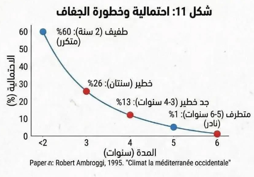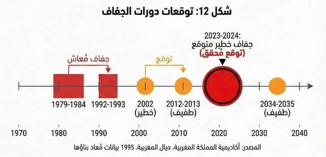 لعل أخطر ما في هذه الوثيقة هو جدولها الزمني التوقعي (كما يوضح الشكل المعاد بناؤه). لم يكتفِ أمبروجي بتفسير جفاف الثمانينات والتسعينات الذي عاشه المغاربة، بل رسم خطاً للمستقبل.